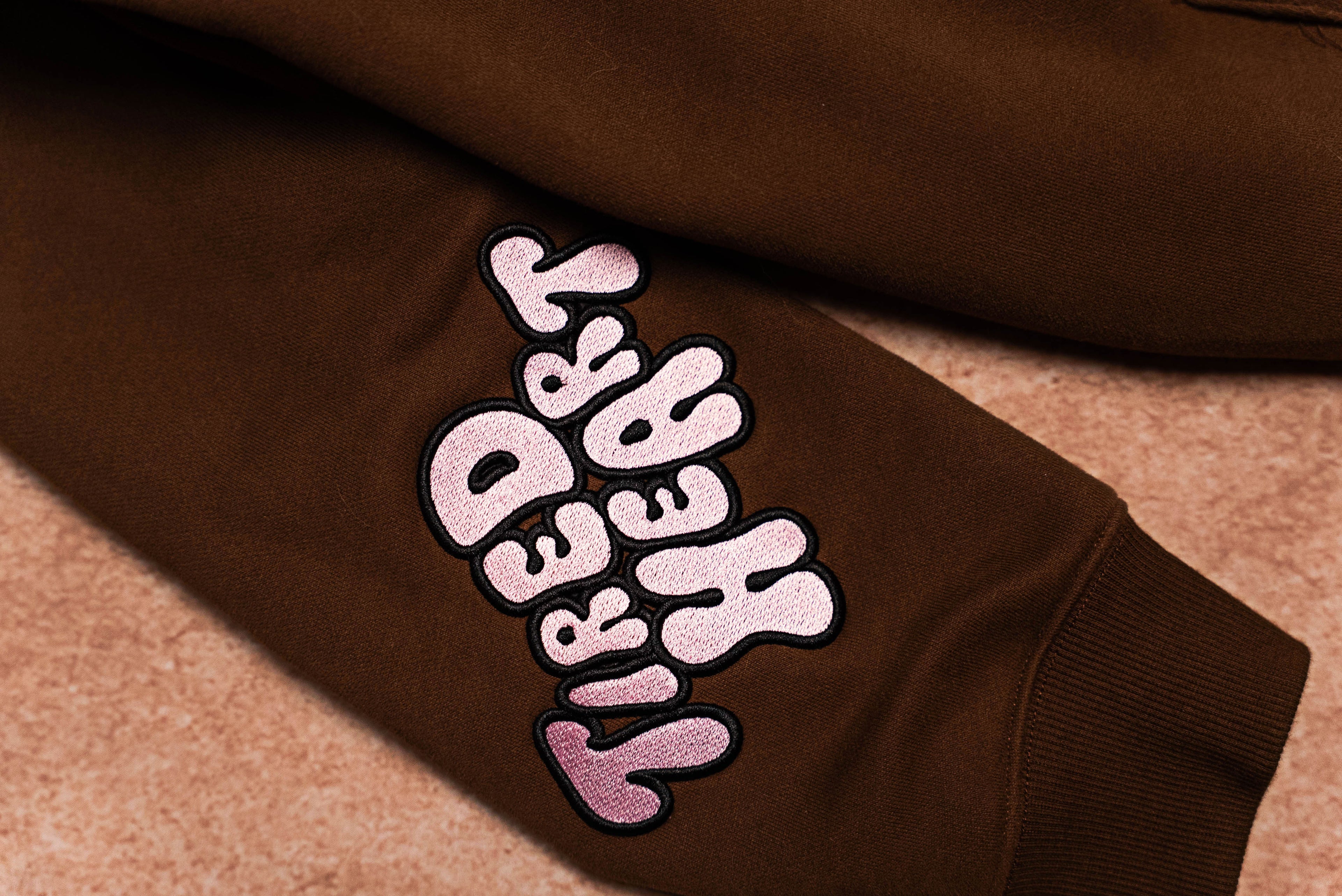 The icoinic TIRED HEART arm detail is completed with patch embroidery