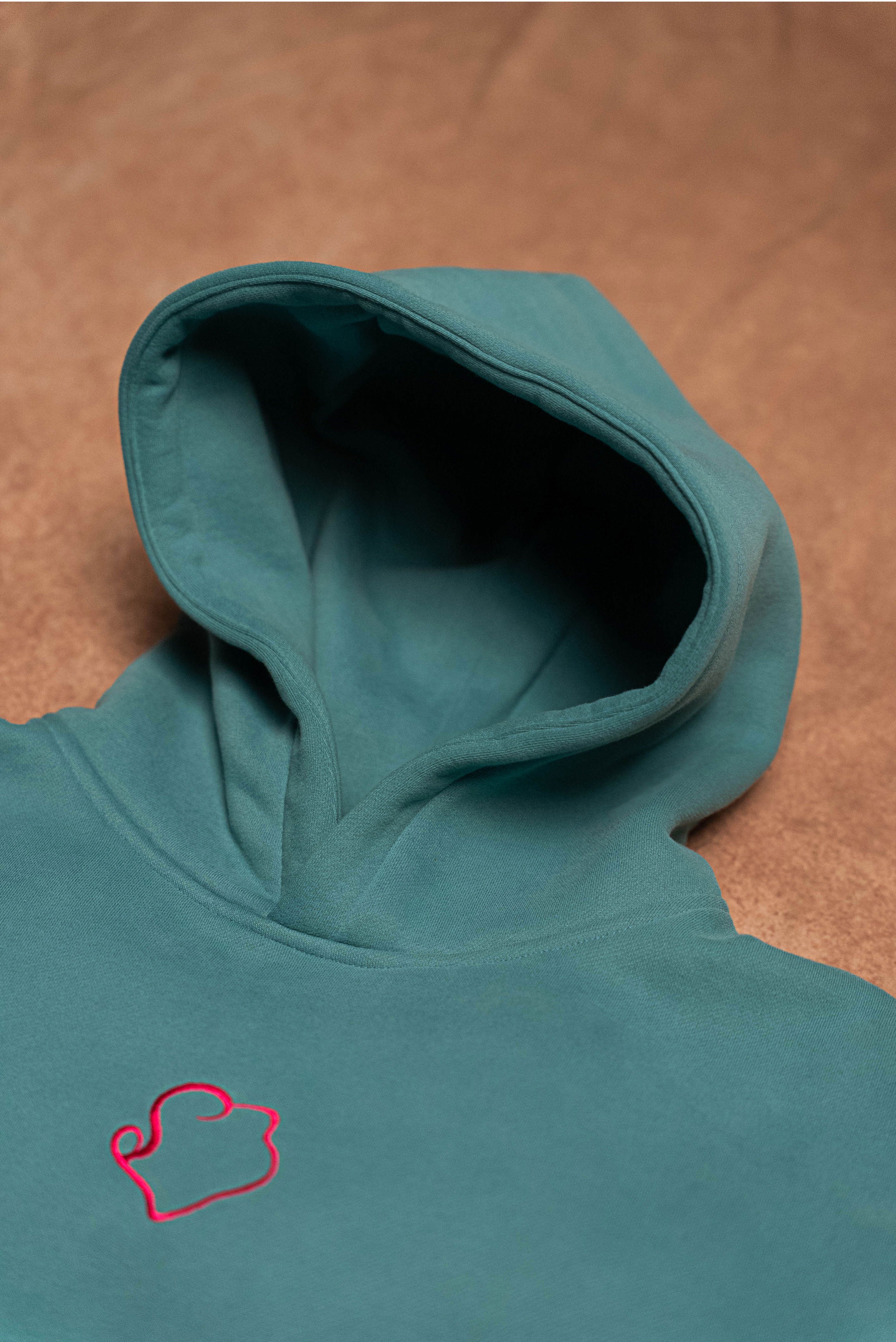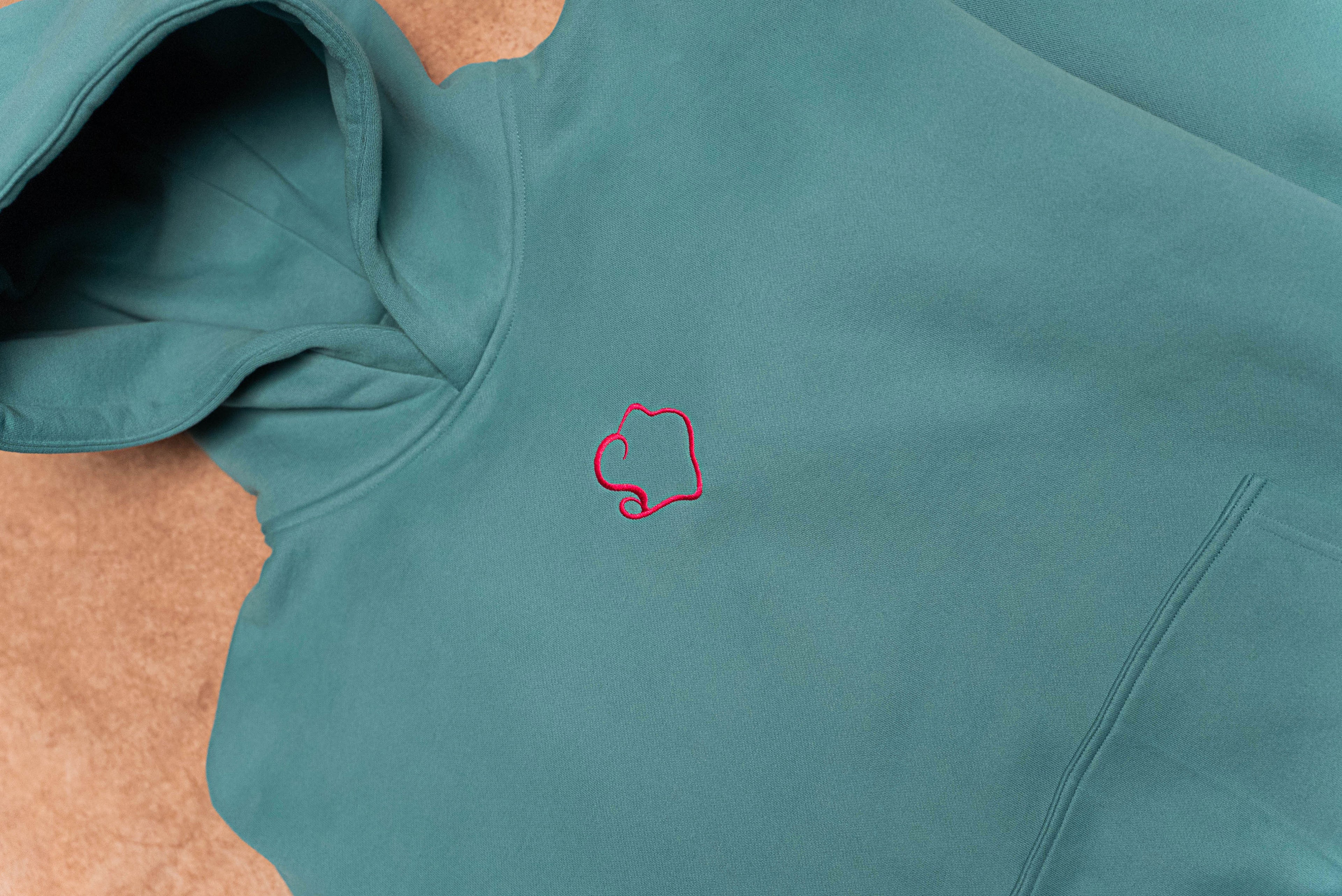 The icoinic FACES logo is embroidered on the front of the sweater in bright pink.